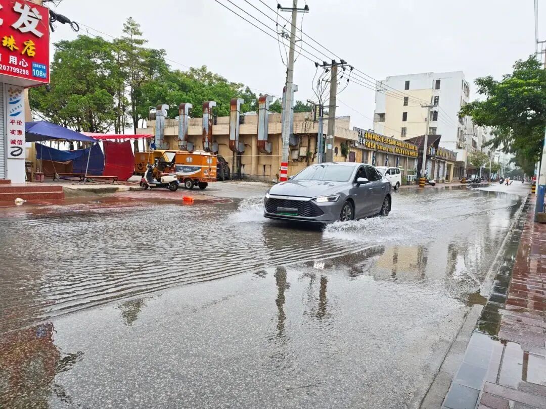 汽车经过积水路面。图片来源:北海市融媒体中心