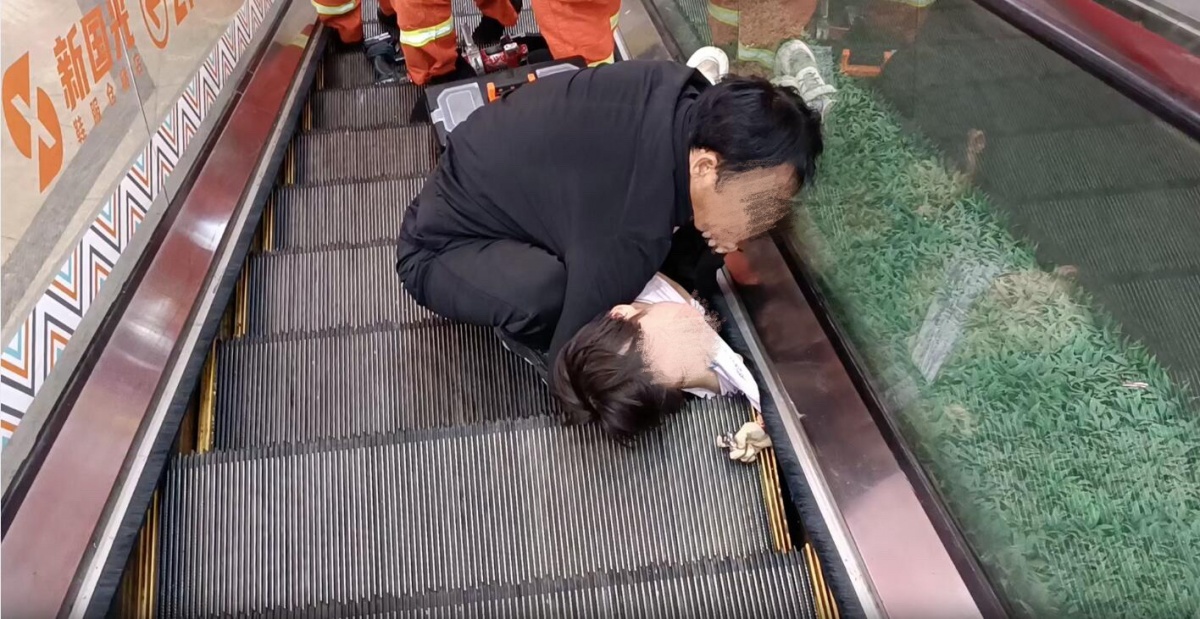 危险!南宁一8岁女童右手被卡扶梯中,商家按下急停按钮