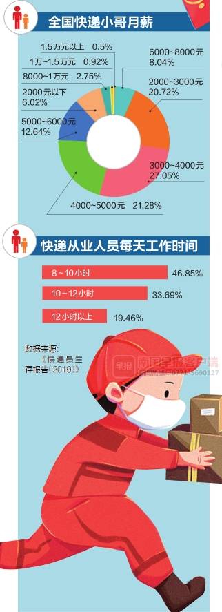 快递业服务在服务疫情防控和保障城市运转方面的作用日益明显,行业发展规模也在不断壮大,但快递员群体的生存环境却日趋恶劣。据中国邮政快递报发布的《快递员生存报告(2019)》显示,快递从业人员每天工作8~10小时的占46.85%,每天工作10~12小时的占33.69%。