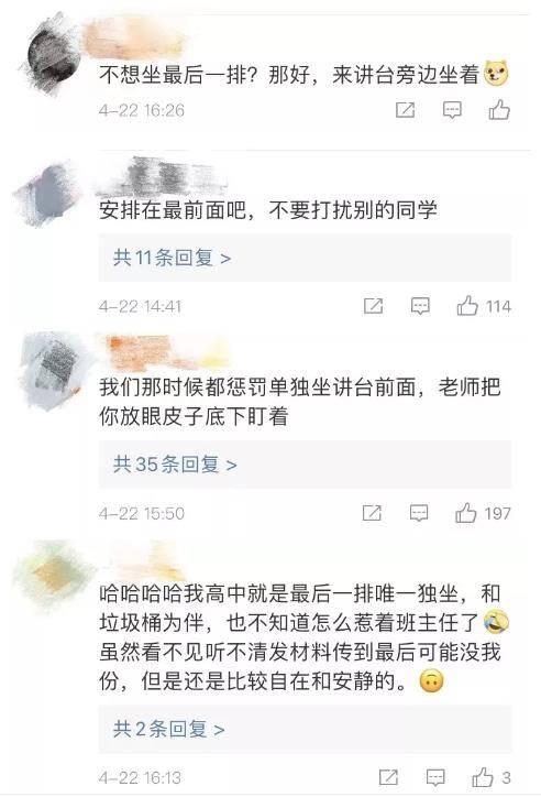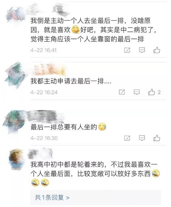也有网友表示,自己就是比较喜欢坐在最后一排。