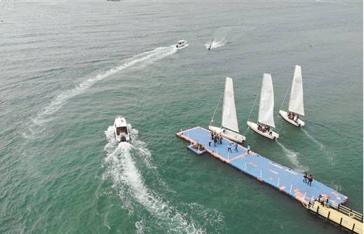 在北海市涠洲岛景区,游客乘坐游艇观赏美景,乐享“壮族三月三”假日。 李君光摄