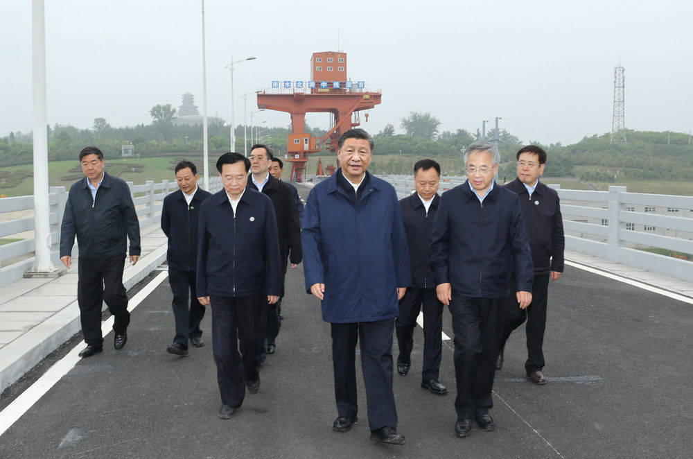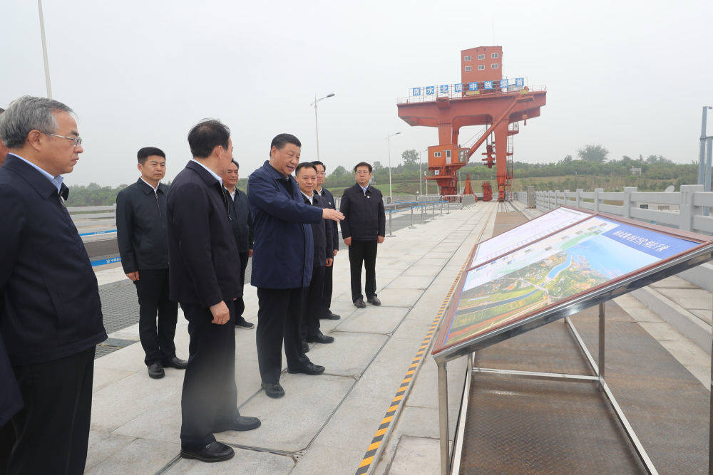 ▲这是13日下午,习近平在南阳市淅川县陶岔渠首枢纽工程考察。