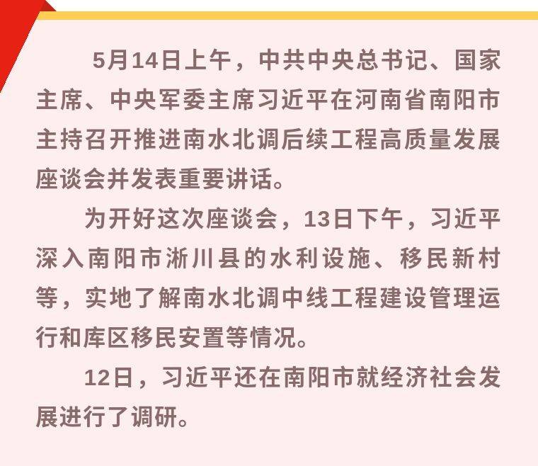 ▲这是14日上午,习近平在南阳市主持召开推进南水北调后续工程高质量发展座谈会并发表重要讲话。