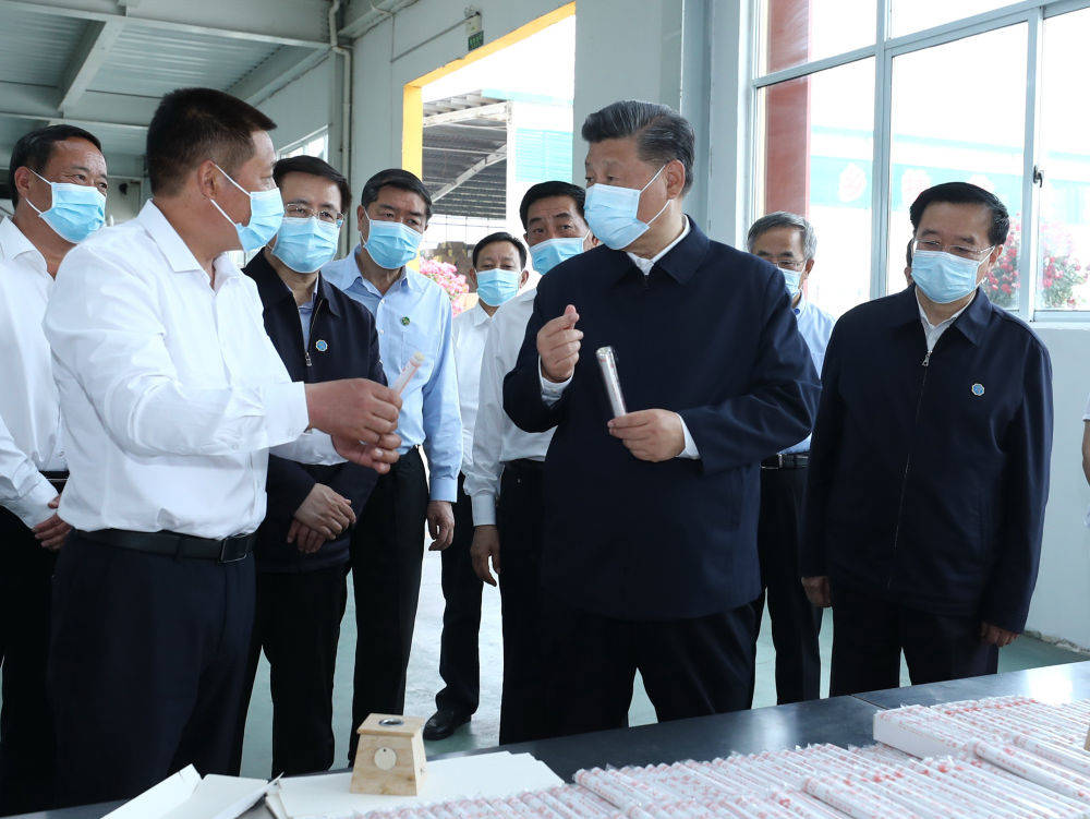 ▲这是12日下午,习近平在南阳药益宝艾草制品有限公司考察。