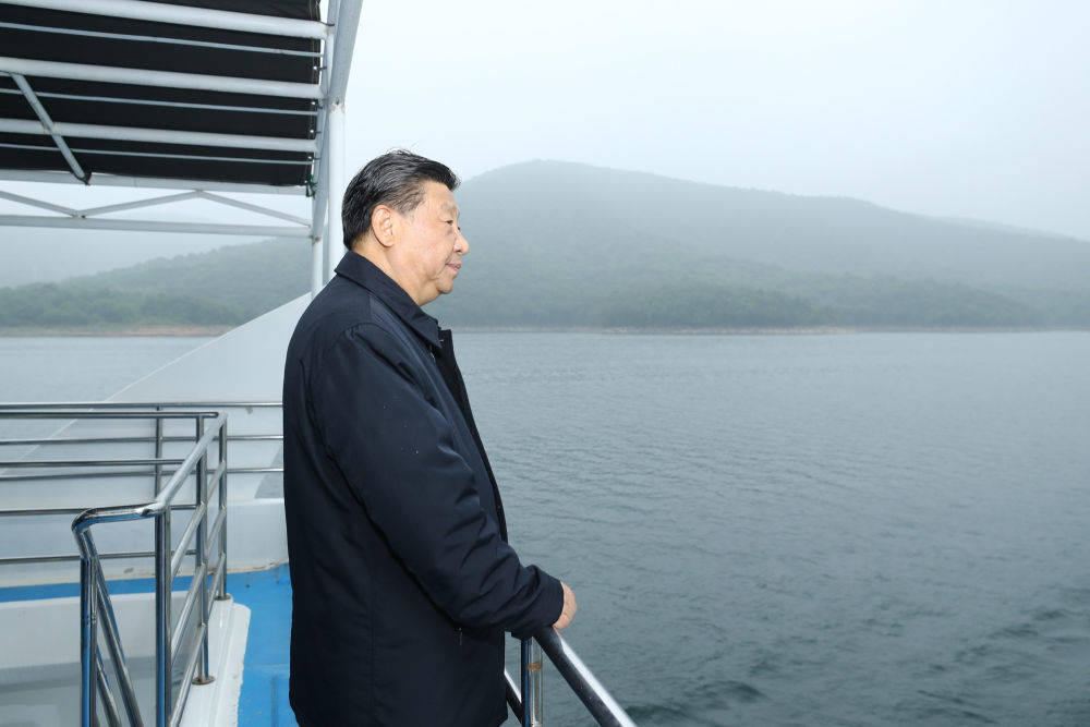 ▲这是13日下午,习近平在南阳市淅川县乘船考察丹江口水库。