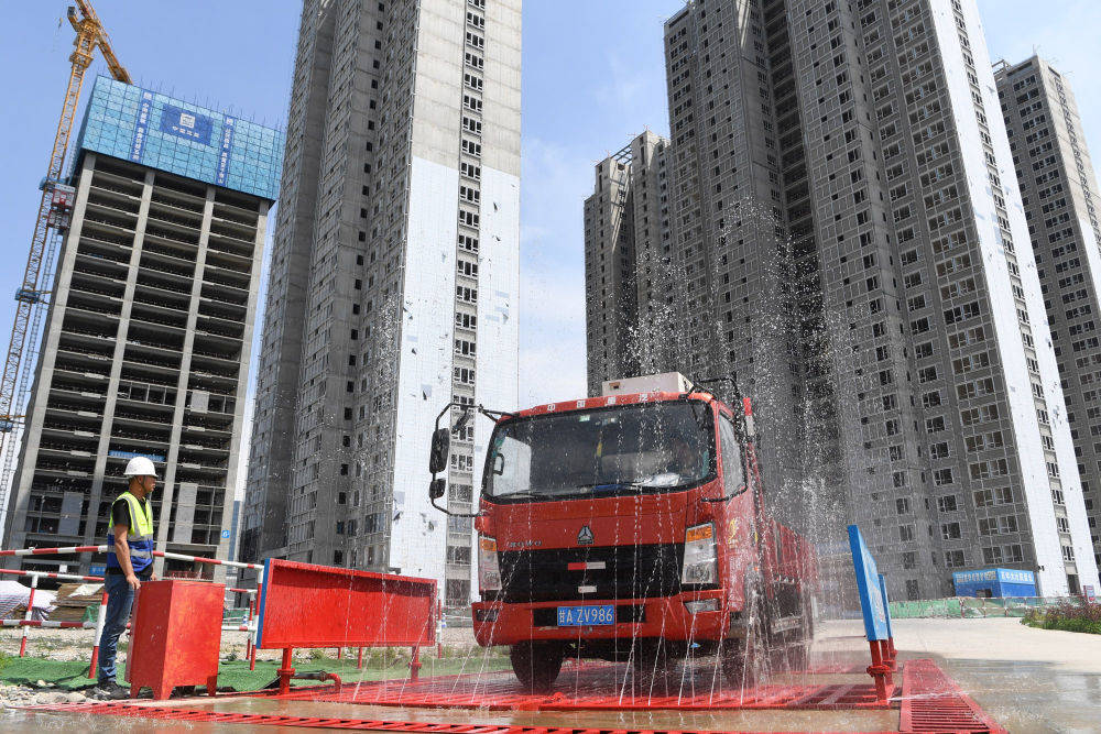 ▲在甘肃省兰州市中建三局一处建设工地上,感应式的洗车台利用循环再生水冲洗车辆,并对污水再次回收利用(5月12日摄)。