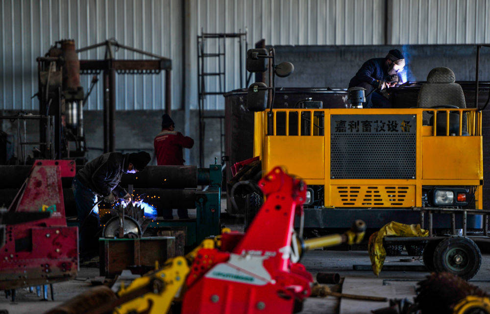 ▲2020年3月10日,工人在内蒙古嘉利节水灌溉有限公司厂房内加工零件。