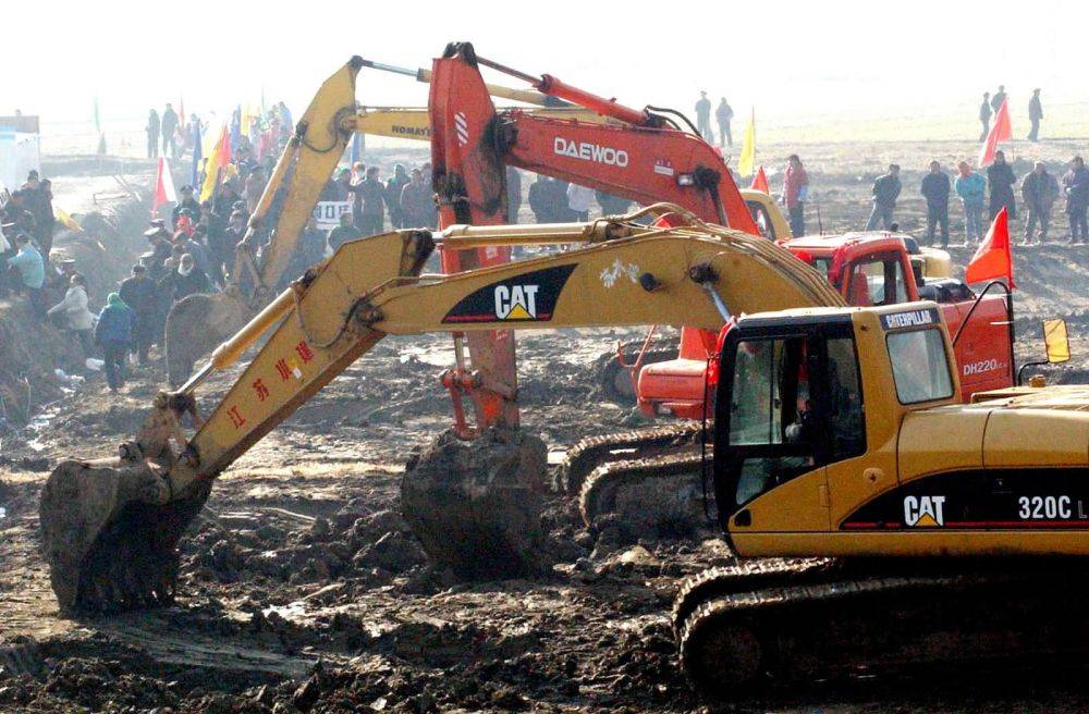 ▲2002年12月27日在江苏扬州宝应县南水北调东线工程潼河工地拍摄的施工现场。南水北调工程在这一天正式开工建设。