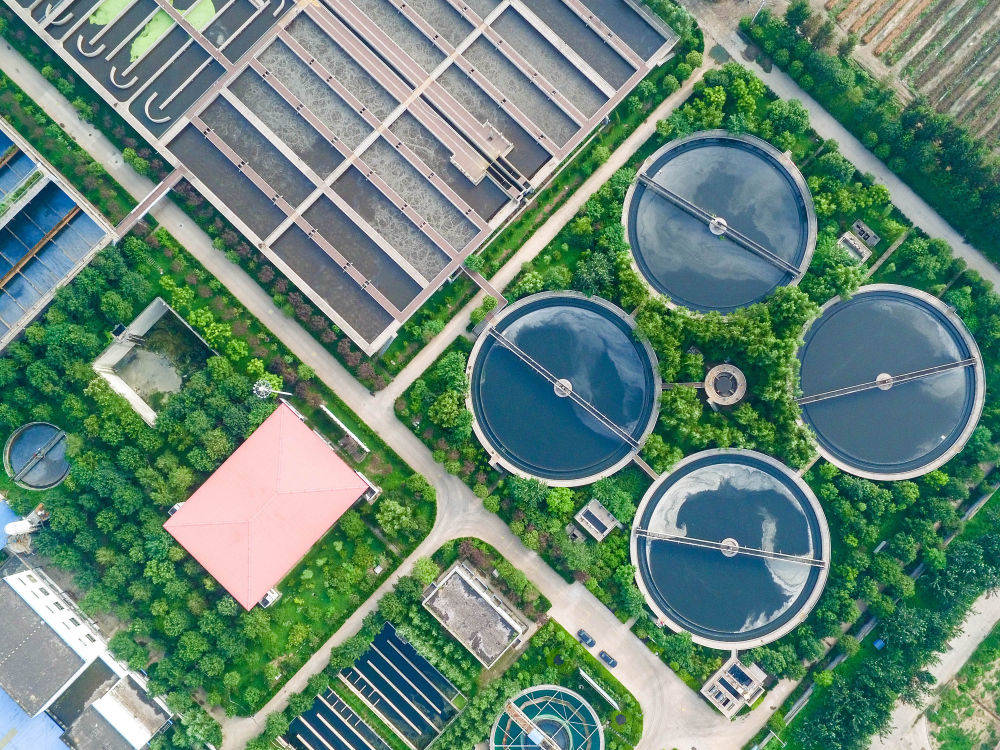 ▲在山东省邹平县,污水经城市污水处理厂处理,成为当地湿地公园的水源(无人机照片,2016年7月26日摄)。