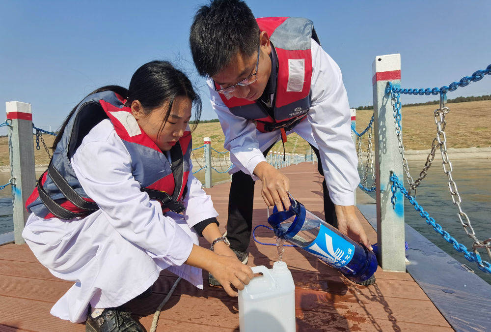 ▲2020年11月12日,工作人员在南水北调中线陶岔渠首监测水质。