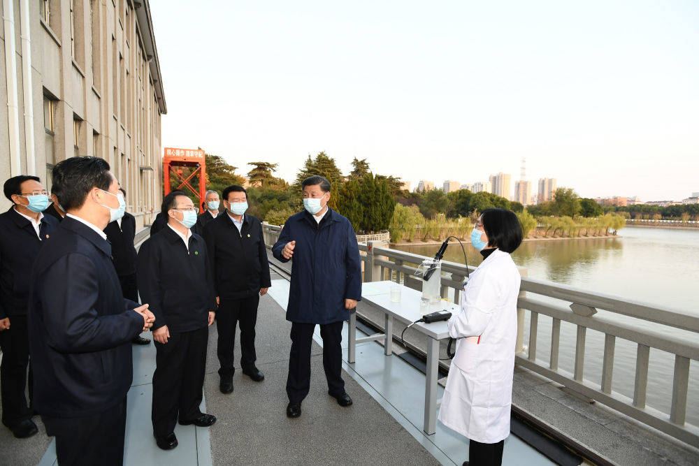 ▲2020年11月13日,习近平在江苏省扬州市考察调研。这是习近平在江都水利枢纽,了解南水北调东线工程规划建设和枢纽运行等情况。