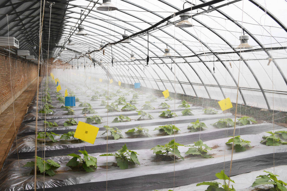 ▲北京海淀首农庄园是一座新型农业示范园。庄园蔬菜大棚采用滴灌与倒挂微喷相结合的双系统灌溉模式,上下结合,精准“投喂”,明显降低了用水量(3月18日摄)。