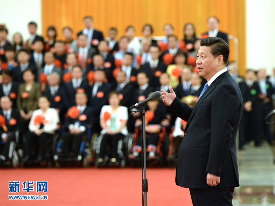 ▲2014年5月16日,习近平在北京人民大会堂会见第五次全国自强模范暨助残先进集体和个人表彰大会受表彰代表。新华社记者 马占成 摄