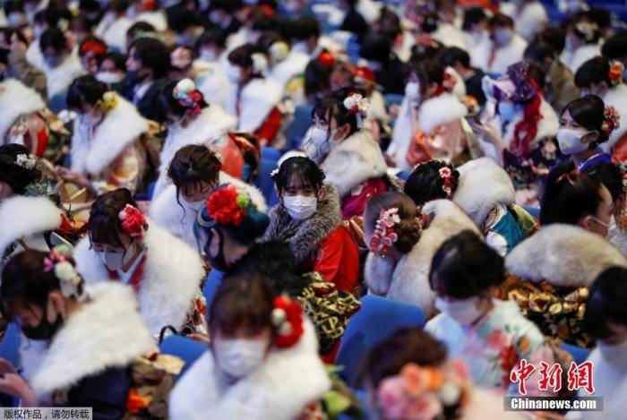 ▲当地时间2021年1月11日,日本迎来“成人日”,横滨穿着和服戴着口罩的少女们参加成人礼。