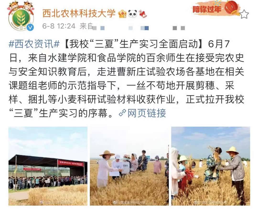 近日,“西北农林科技大学数千名师生共同在田间收小麦”的视频,冲上热搜。