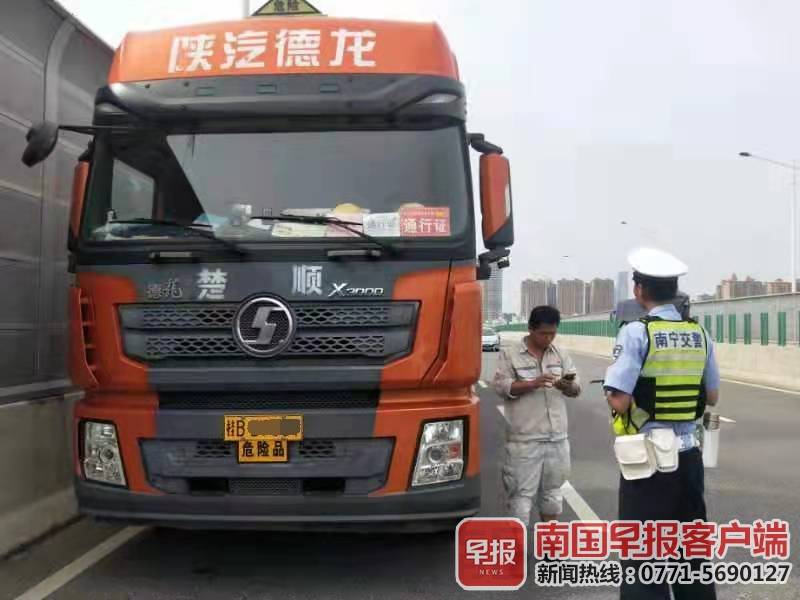 ▲南宁交警部门正在开展道路交通秩序整治行动,严查中型以上客货车交通违法行为。