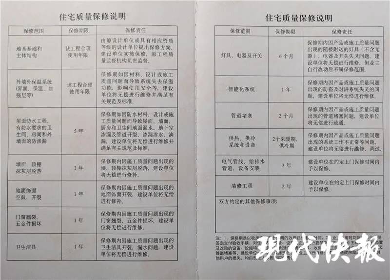 ▲《住宅质量保修说明》。
