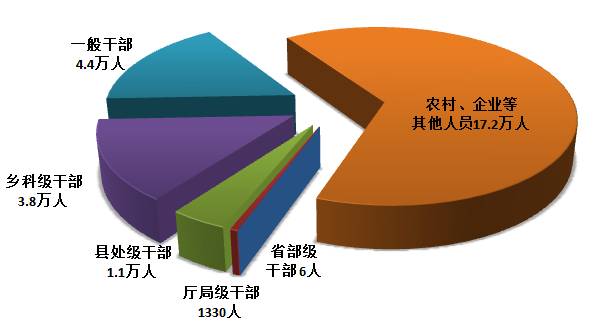 2021年上半年,全国纪检监察机关共接收信访举报180.6万件次,处置问题线索93.2万件,谈话函询16.9万件次,立案32.1万件,处分26.5万人(其中党纪处分22.1万人)。处分省部级干部6人,厅局级干部1330人,县处级干部1.1万人,乡科级干部3.8万人,一般干部4.4万人,农村、企业等其他人员17.2万人。