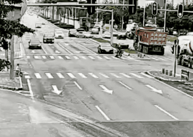 7月28日下午,广东惠州一路口出现惊险一幕:一名男童独自骑着自行车在车流中穿梭,正在该路段执勤的辅警曾勇军见状立马追了上去并试图叫住男童。由于周围环境过于嘈杂,男童并没有听到他的劝阻,继续横穿马路。