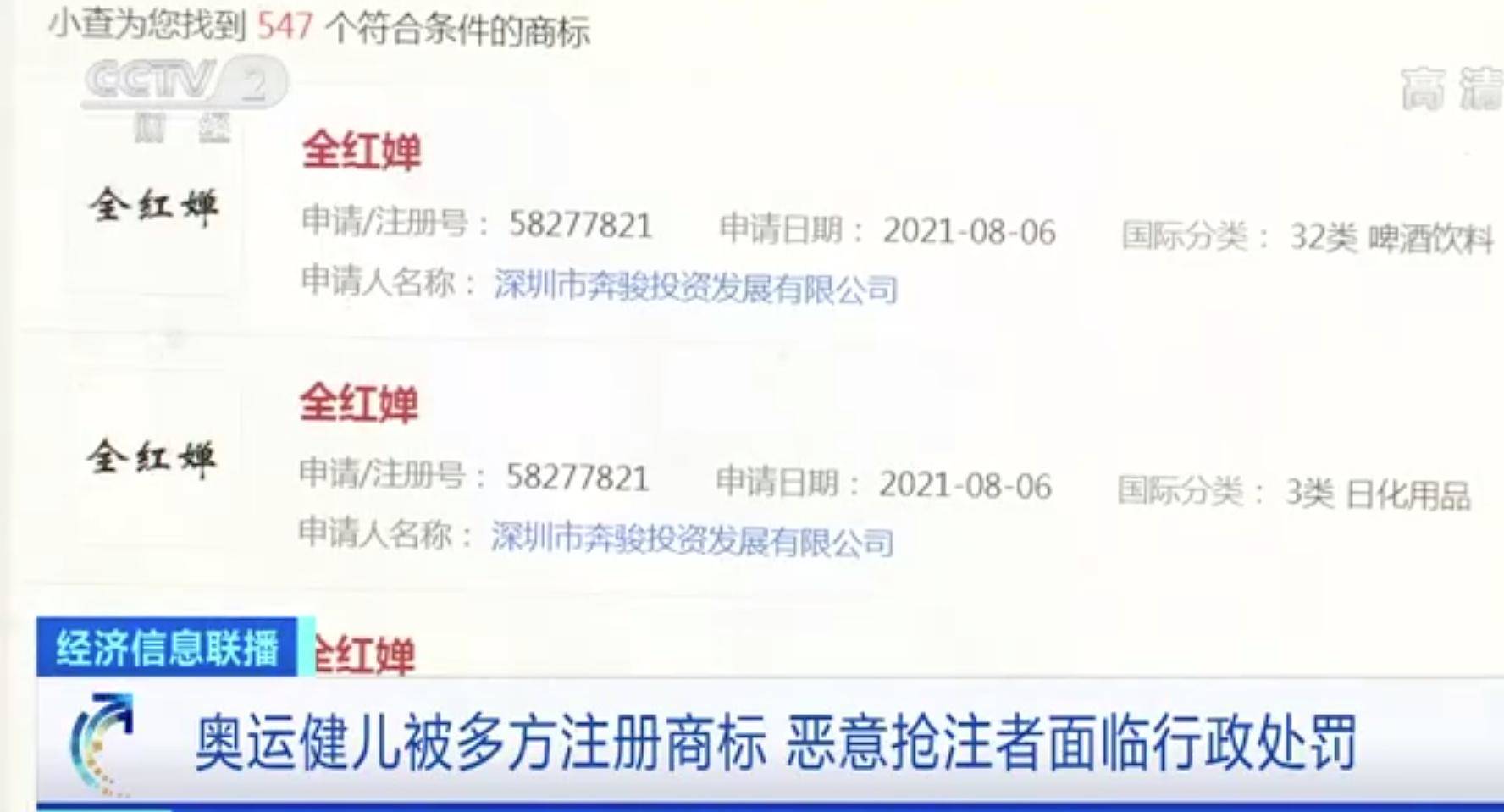 8月19日,国家知识产权局回应称,个别企业和自然人把“杨倩”“陈梦”“全红婵”等奥运健儿姓名和“杏哥”“添神”等相关特定指代含义的热词进行恶意抢注(戳链接看此前报道→奥运健儿被抢注商标,奥委会回应),提交商标注册申请,以攫取或不正当利用他人市场声誉,侵害他人姓名权及其合法权益,已产生了恶劣的社会影响。