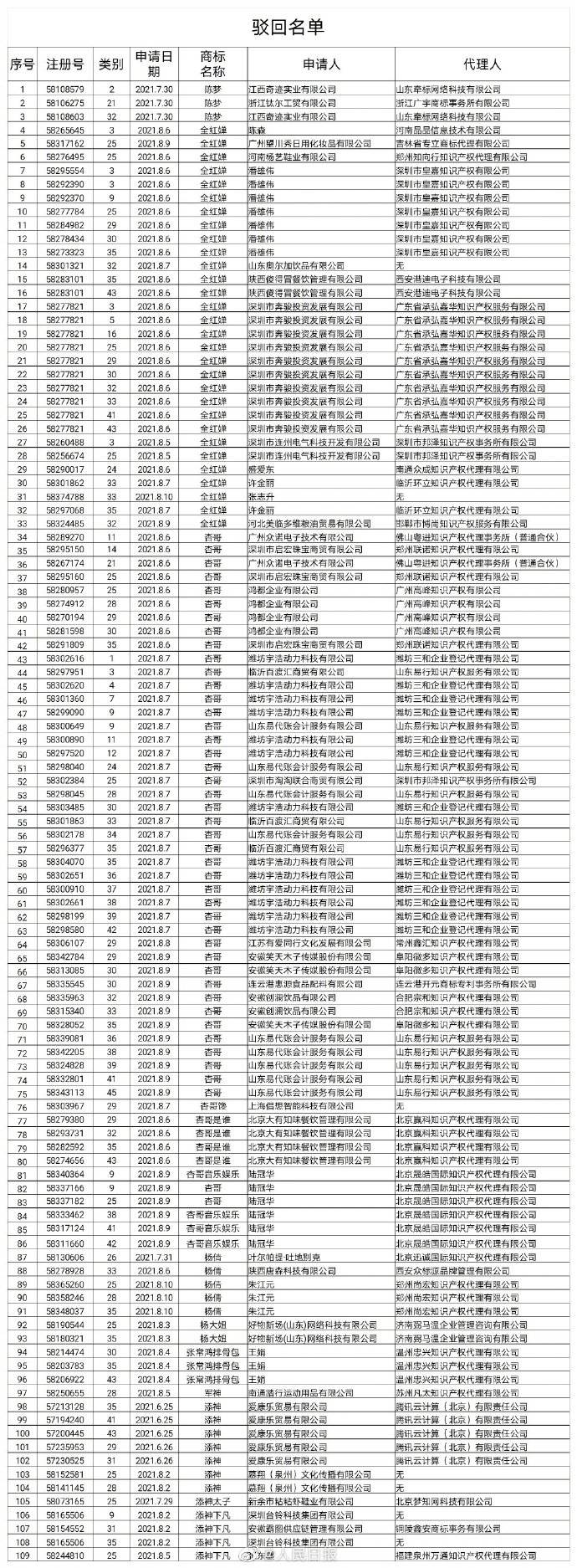 (原标题:最新!#杨倩陈梦全红婵等109件商标注册申请被驳回#)
