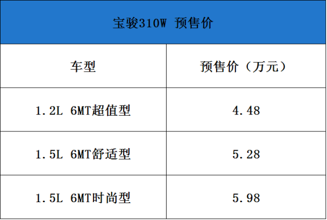 而现在,宝骏又瞄准了入门家用轿车市场的空白区域,为它的百万梦想祭出了一款即将上市的重量级新车——宝骏310W。近日,宝骏汽车正式公布了310W车型的预售价,新车提供1.2L/1.5L这两种动力版本共计推出3款车型,预售价区间为4.48-5.98万元。