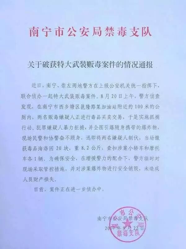 8月22日,南宁市禁毒委员会在官方网站上发布了相关案件的情况通报▼