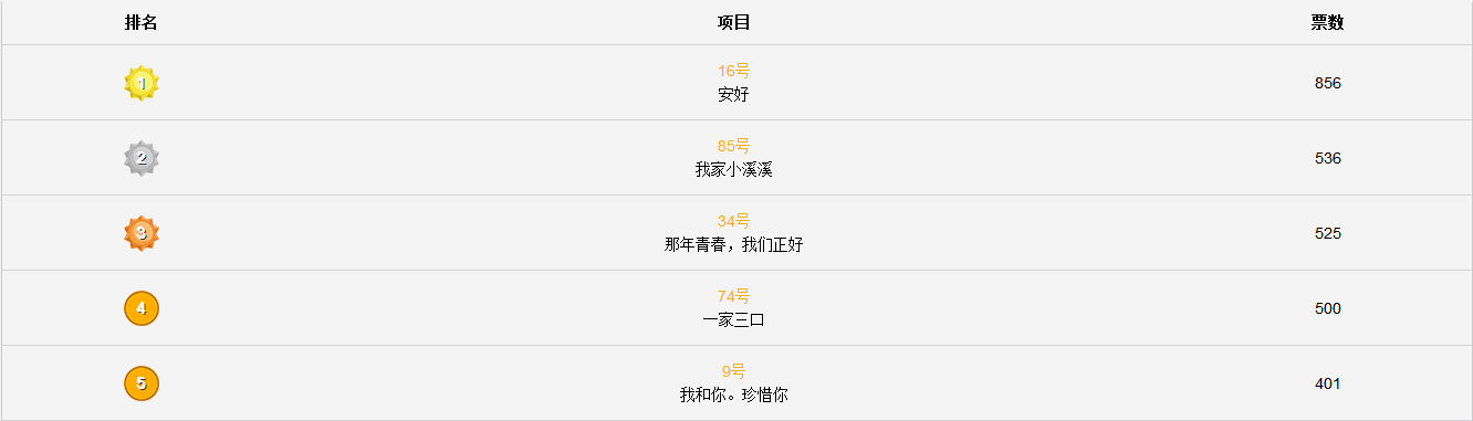票数排行榜前5名
