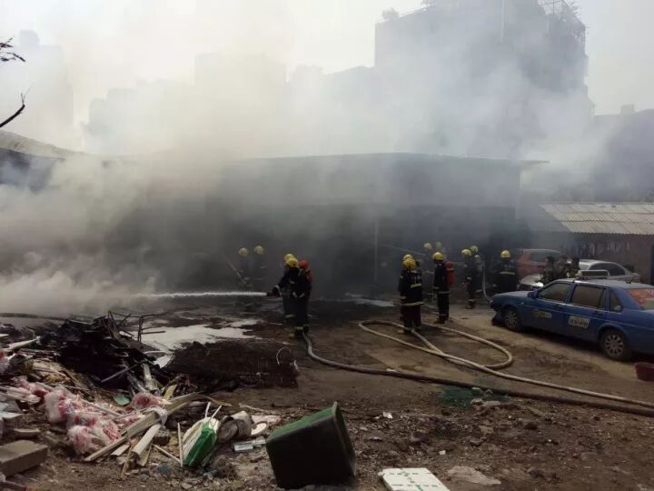 2017年11月1日10时36分,南宁市消防支队接到报警:南宁市兴宁区长堽南四里122-2号铁皮棚着火。接警后,南宁支队立即调派特勤一二、兴宁、朝阳、柳沙中队共7个灭火编队(4辆城市主战车,4辆水罐消防车,2辆抢险救援车,2辆高喷车,2辆水带铺设车)60名官兵赶赴现场扑救。支队全勤指挥部遂行出动。