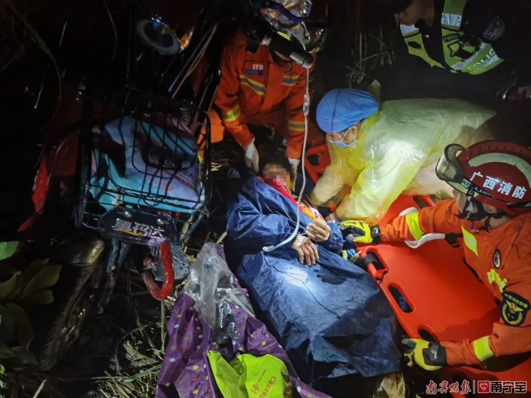 14日凌晨1时29分,南宁市消防救援支队指挥中心接到报警,称武鸣区锣圩镇往玉泉方向,有一名骑电动三轮车的老人连人带车掉落河岸边,急需救援。接到警情后,武华消防救援站消防员立即赶赴现场。