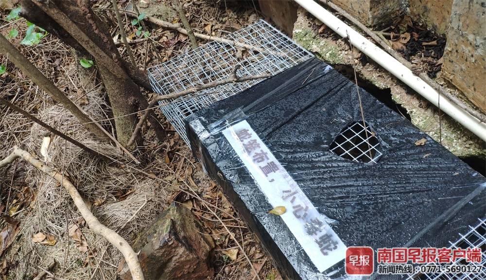 ▲小区围栏边设置的捕蛇笼。南国早报客户端记者 何定坚摄