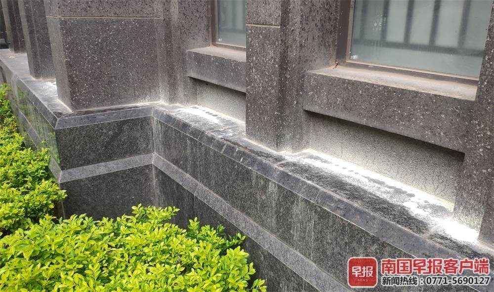 ▲小区低层建筑物一些地方撒有驱蛇药物,并伴有安全提示。南国早报客户端记者 何定坚摄