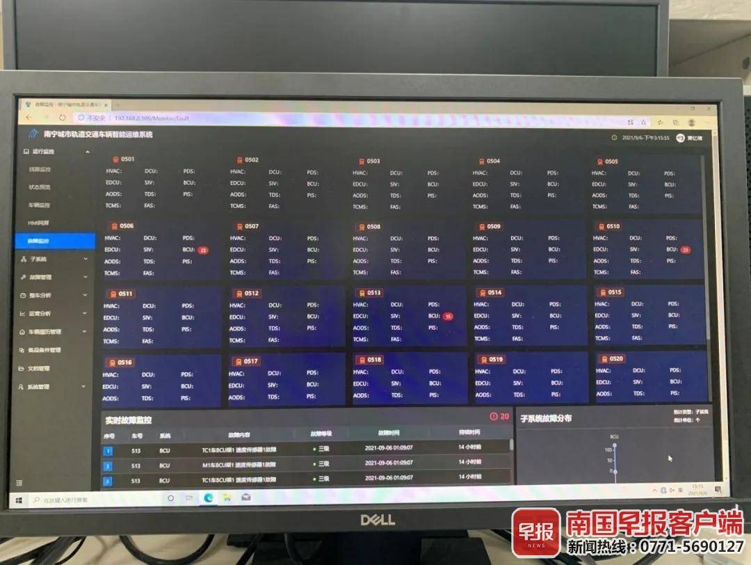 ▲地铁5号线配置低的控制中心车辆专家诊断系统界面,可检测运营车辆及故障信息。南宁轨道交通集团建设分公司供图