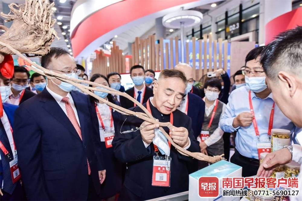 ▲张伯礼院士在广西中医药成果展区逛展。南国早报记者 赵劲松摄