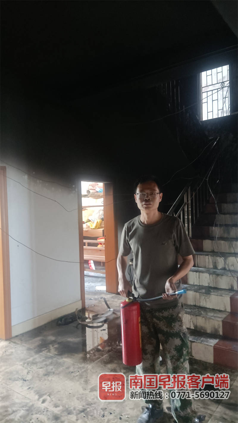 当他来到2楼楼梯间时,发现楼上已被浓烟笼罩,并且温度很高,于是他就在两三米外用灭火器对准起火点喷射。就在他的灭火器准备用完时,龙潭中学的谢安全老师拿着灭火器冲了进来。他们一边灭火,一边呼喊楼上人员先往高处安全位置撤离。