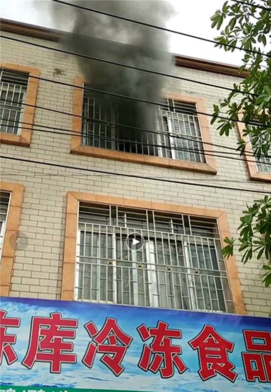 ▲事发民房三楼窗口冒出浓烟。视频截图