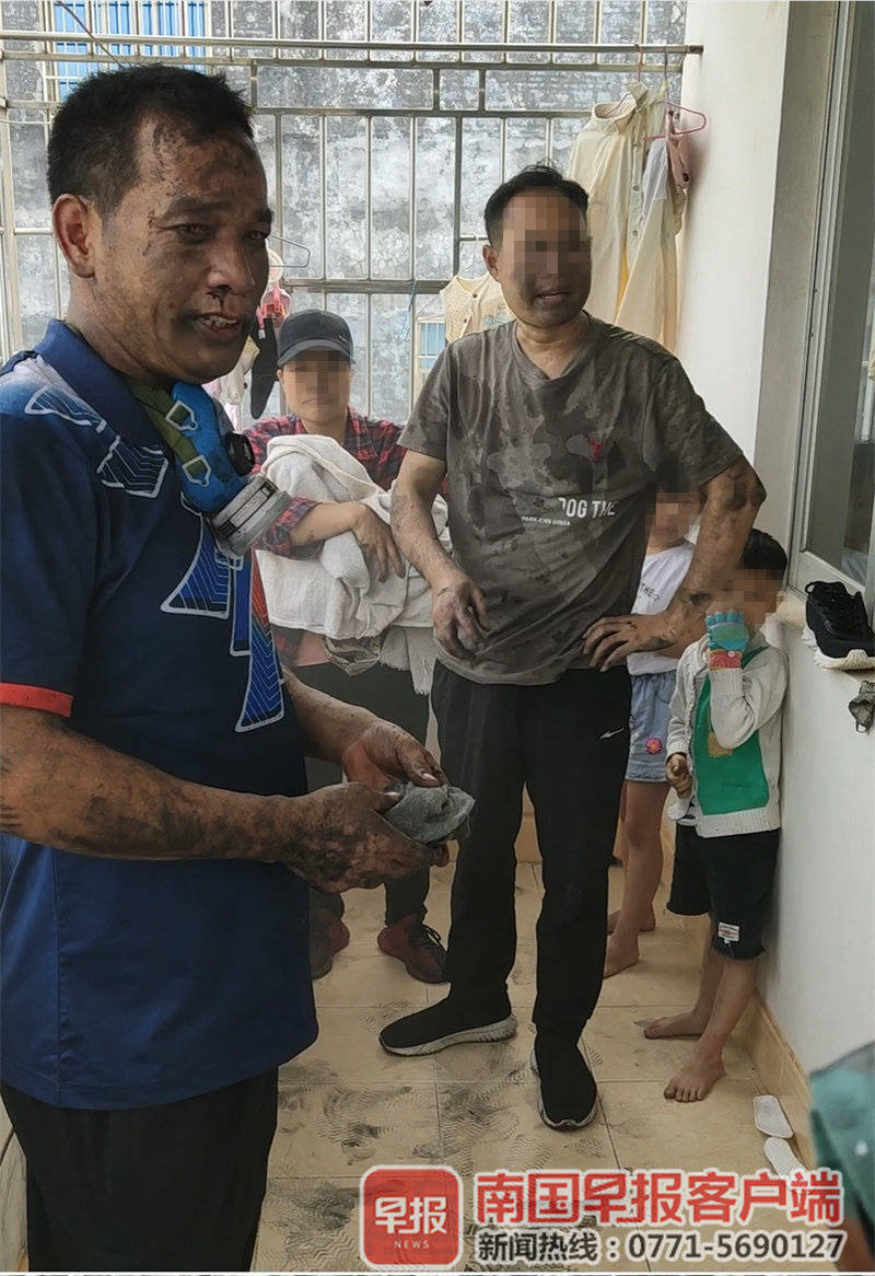 没多久,辖区消防和热心群众赶到。众人齐心将被困在3楼露天阳台处的4名小孩和2名大人救了出来。