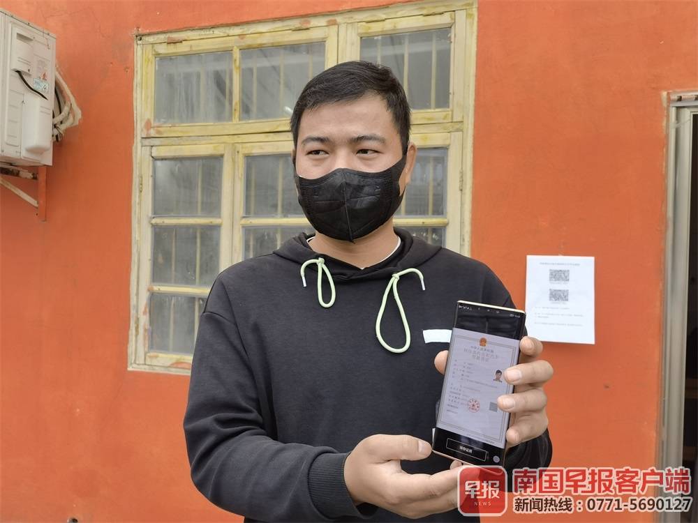 10月18日,通过“扫脸即办+电子证照”审批模式,网约车司机屈先生在手机上领到了南宁市行政审批局发放的网络预约出租汽车驾驶员证。这也是广西首张道路运输电子证照。