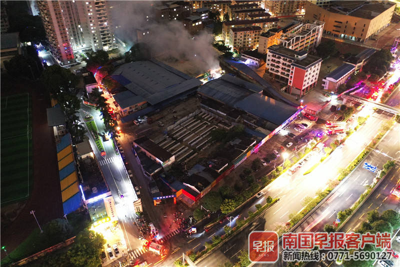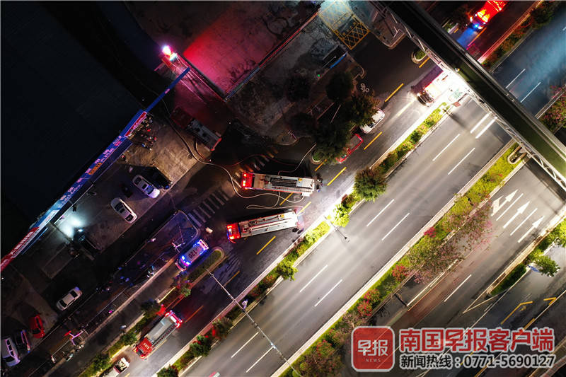 ▲10月18日零时30分左右,火势得到控制,图为火灾现场全貌。南国早报客户端记者 邹财麟摄