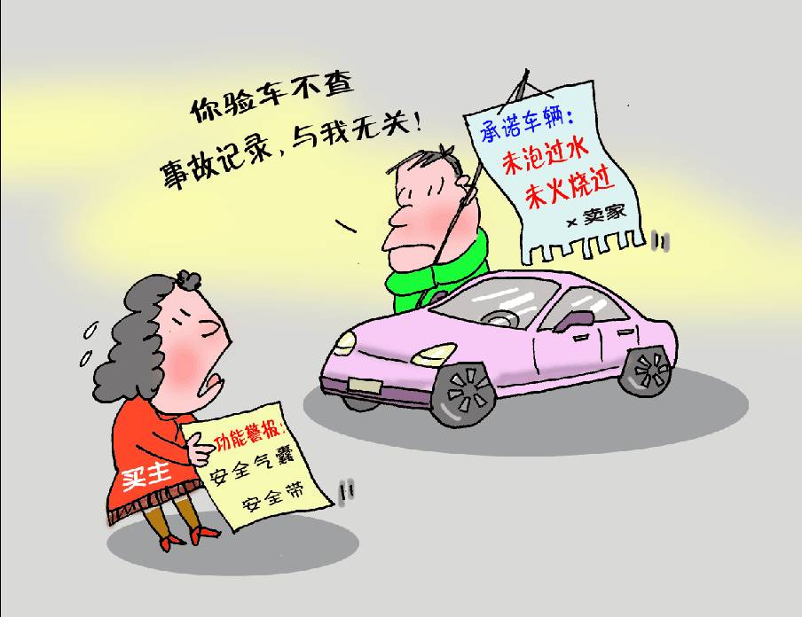 ▲买主买车不查事故记录,惹来纠纷。南国早报客户端记者 何定坚画