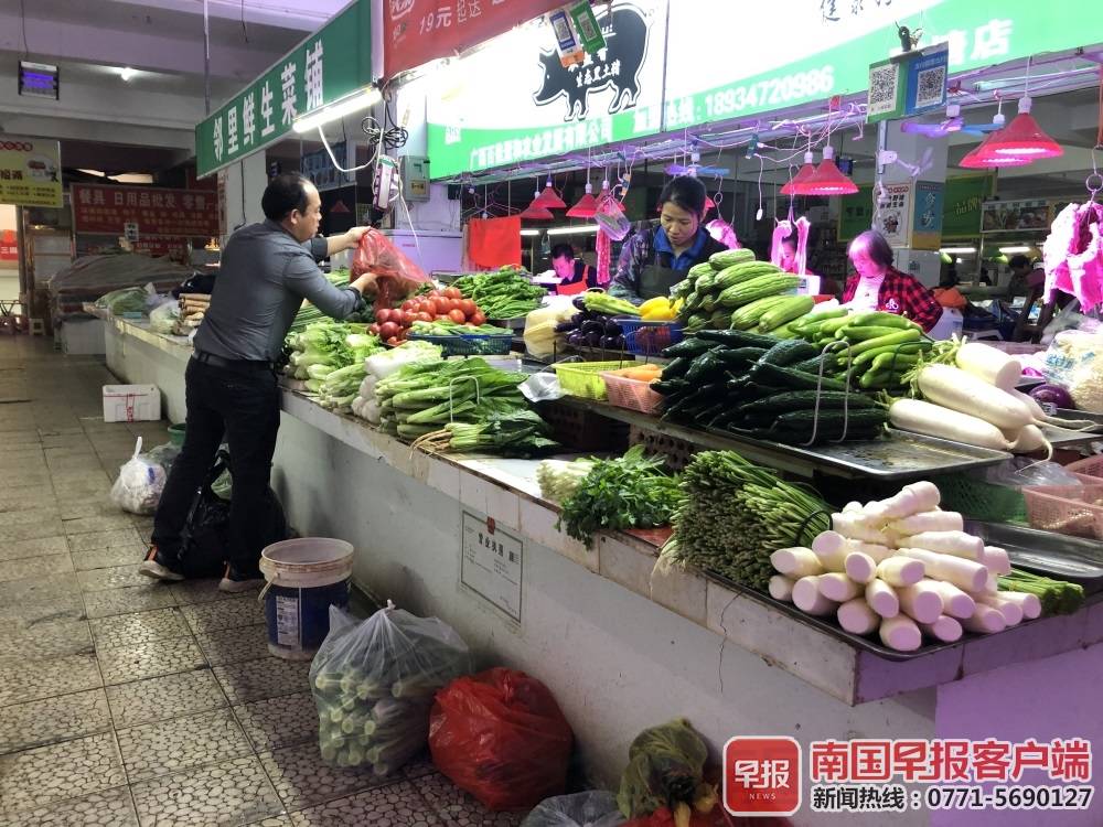 ▲在官塘市场,摊主刚刚把进货的蔬菜摆上。南国早报客户端记者 张文卉摄