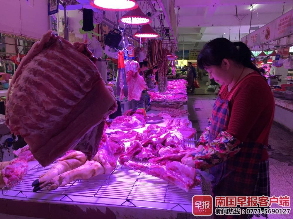 ▲在官塘市场,猪肉价格仍在“一”字头。南国早报客户端记者 张文卉摄