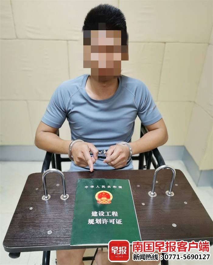 ▲嫌疑人王某祥及被查获的伪造材料。乐业警方供图