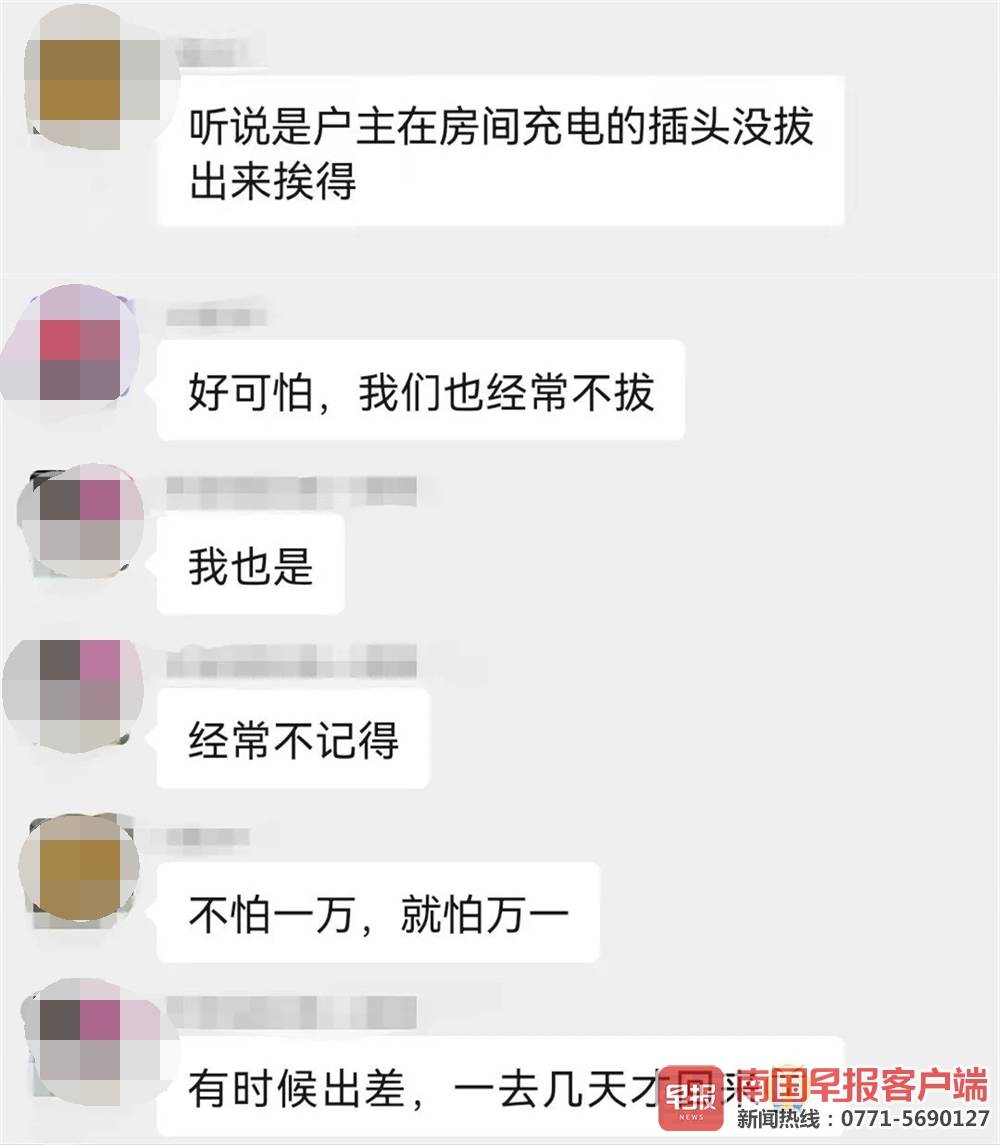 有网友表示,失火原因或是户主忘了拔掉充电器。