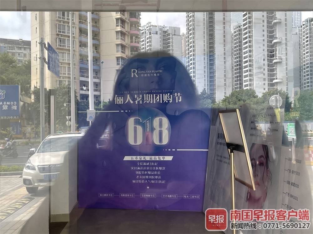 ▲容颜医疗美容院之前的宣传招牌仍在。 南国早报客户端记者卢荻 摄