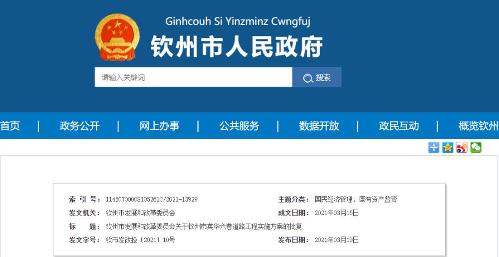 ▲项目相关政策发布。截图自钦州市人民政府官方网站