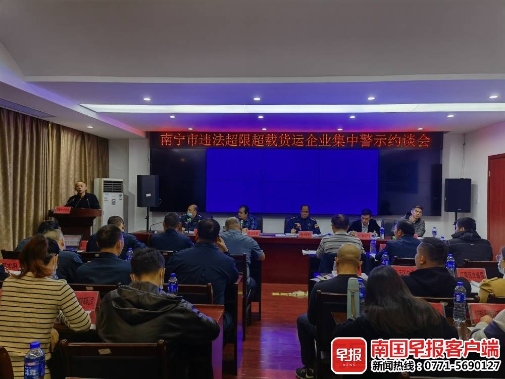 当天警示约谈会现场,部门通报了南宁市21家第三季度超限运输车辆较多的企业,南宁市华宝物流有限公司等被通报。