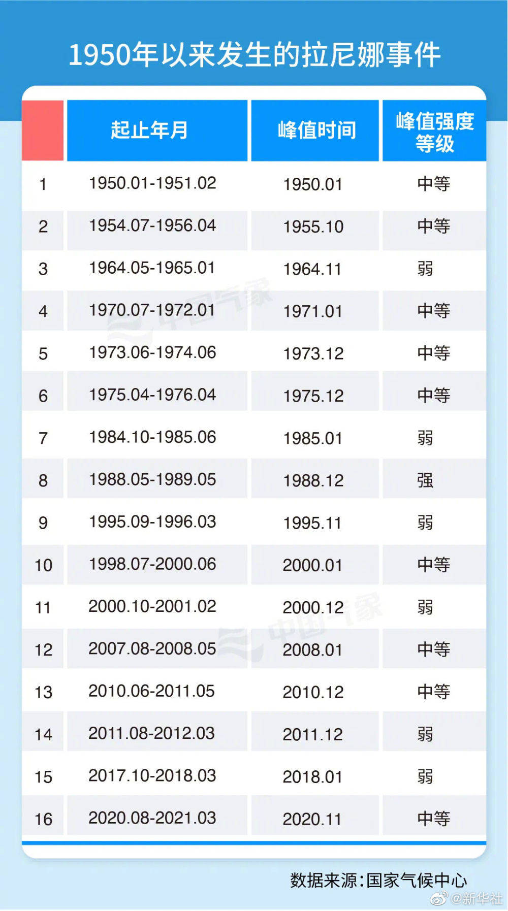 国家气候中心最新消息,今年7月以来,赤道中东太平洋海温持续下降,预计10月进入拉尼娜状态,并于冬季形成一次弱到中等强度的拉尼娜事件。鉴于2020-2021年秋冬季曾出现拉尼娜事件,2021年将是“双拉尼娜年”。