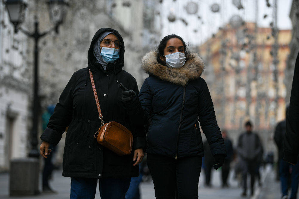 ▲10月20日,在俄罗斯首都莫斯科,人们戴口罩出行。(新华社发,叶甫盖尼·西尼岑摄)