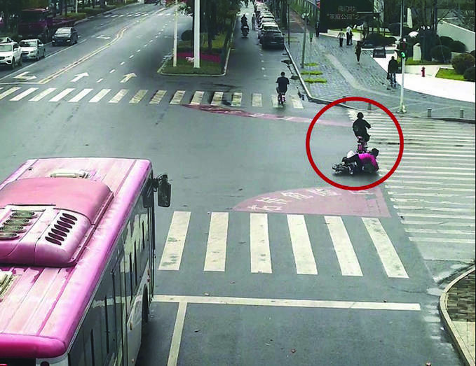 为了尽快找到肇事者,民警连夜调取了现场监控,监控清楚地记录了事发经过,原来肇事电动车在红灯倒计时4秒时闯红灯进入路口,恰好左侧有一辆大型公交车在等红灯,遮挡了她的视线,致使其未能发现转弯的张某,张某的电动车避让不及,而闯红灯的电动车驾车人只是回头张望一眼并扬长而去。